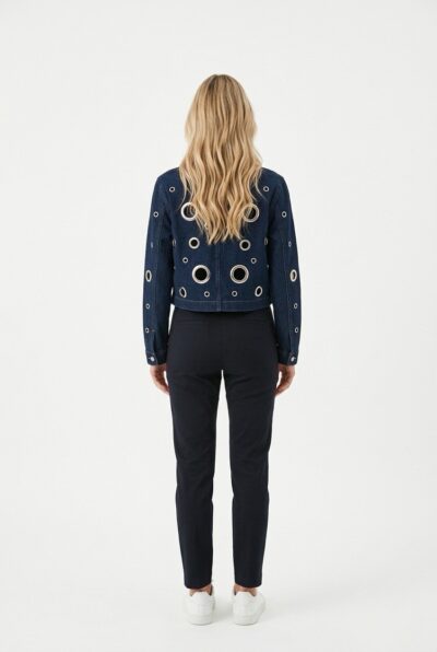 Το Jeans Jacket από την εταιρία Amores είναι ένα άκρος εντυπωσιακό ρούχο σε άνετη γραμμή, κοντό με Silver τρύπες. Το ανοιξιάτικο πανωφόρι μπορεί να συνδυαστεί είτε με παντελόνια είτε με φούστες ακόμη και με φόρμες. Η σχεδίασή του είναι μοναδική και τόσο εντυπωσιακή που δεν θα περνάς απαρατήρητη.