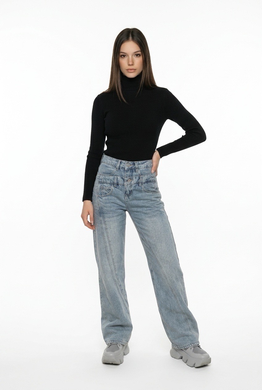 Τζιν Amores με ψηλή μέση και μοντέρνα γραμμή.Αναβάθμισε το καθημερινό σου στυλ με το τζιν Amores, που συνδυάζει άνεση και σύγχρονη αισθητική. Διαθέτει ψηλόμεση εφαρμογή που αγκαλιάζει τη μέση και αναδεικνύει τη σιλουέτα, ενώ το ιδιαίτερο διπλό κούμπωμα προσθέτει ένα fashion-forward στοιχείο. Η χαλαρή, ίσια γραμμή προσφέρει άνεση και ευκολία στην κίνηση, καθιστώντας το ιδανικό για all-day εμφανίσεις.